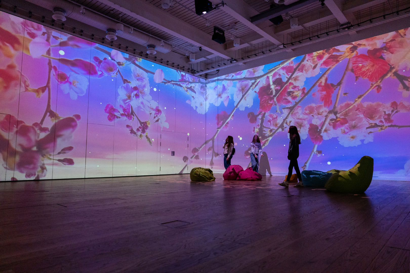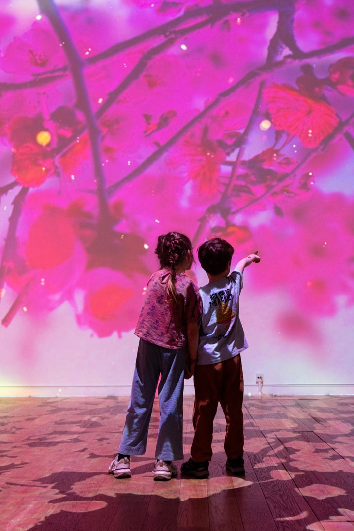 Blossom is an interactive, immersive experience inspired by the stunning natural beauty of flowering blossom trees, which annually explode in a vibrant display of pink and white. It was originally commissioned by the National Trust and premiered in 2024 at Wylam Brewery, Newcastle upon Tyne. This debut was presented as part of a music and poetry event that featured the poet laureate Simon Armitage and his band LYR. For the National Trust’s 2025 Festival of Blossom, Blossom was reconfigured into a standalone installation and presented at the Great North Museum: Hancock. This iteration featured an interactive floor element, inviting audiences to walk among and influence a virtual sea of blossom petals.