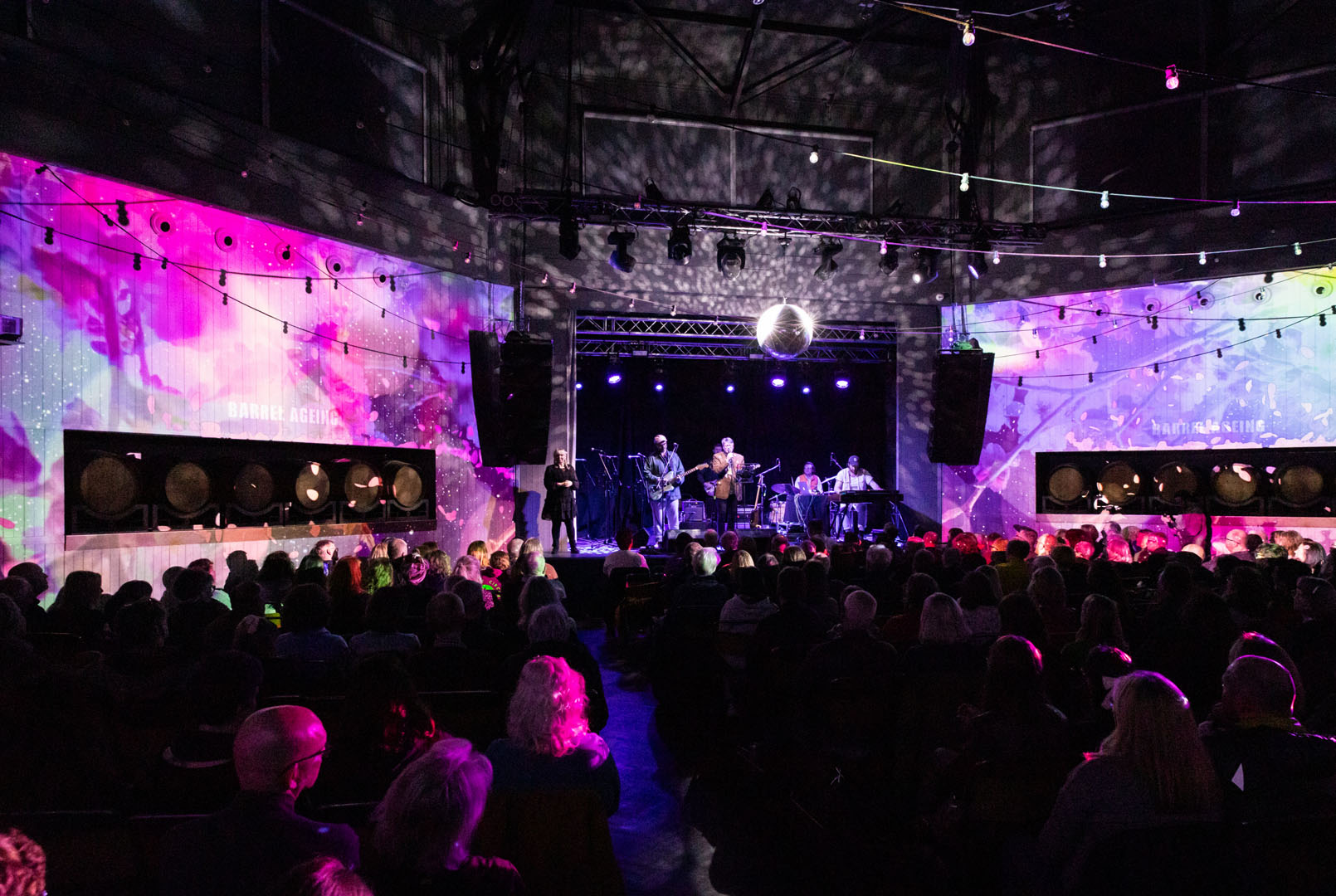 The unique performance space at Wylam Brewery is an octagonal room, distinguished by a mix of wood paneling and exposed brick, with the audience seated centrally. To create a fully immersive experience, we utilised projection mapping on four of the eight walls. This completely surrounded the audience with huge, animated "windows" into the natural world. The video content consisted of endlessly looping animations of beautiful blossom trees. These visuals evolved from a day's dawning to its night, taking the audience on a stunning natural journey. For the 2025 Festival of Blossom, a change in setting and format presented an opportunity to introduce a complementary interactive element. NOVAK developed a projected floor component that depicted a sea of blossom petals. As audiences walked through them, the petals would react and move, brilliantly complementing the video and providing a further level of engagement.