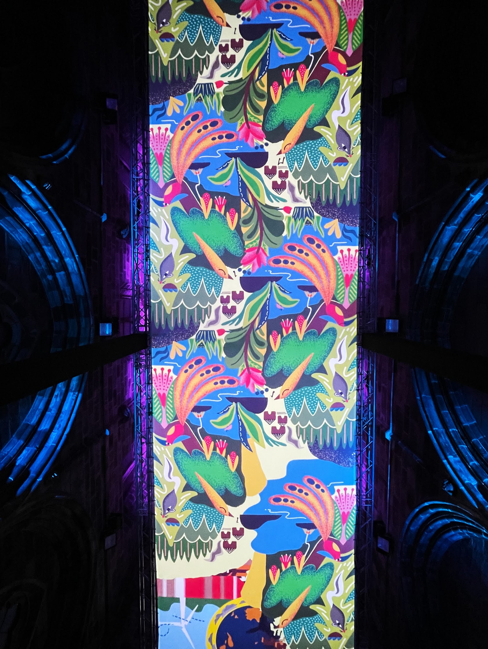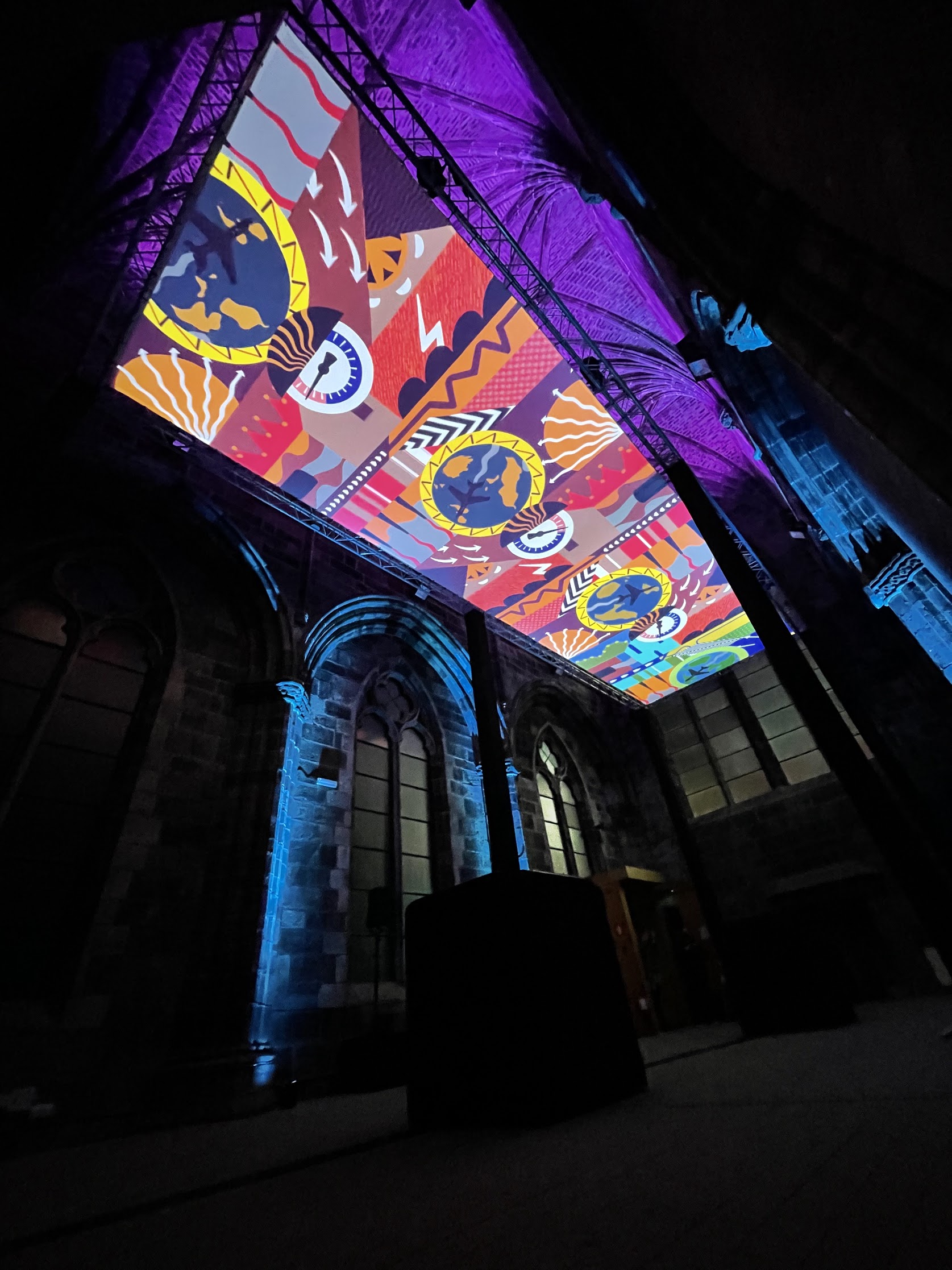 NOVAK, in collaboration with Hazel Dunn, crafted a dynamic projection design that transformed Trinity Apse into a canvas for urgent storytelling. The visuals seamlessly integrated with the spoken word, enhancing the emotional weight of the narrative while immersing audiences in an atmospheric and thought-provoking experience. Calum Paterson’s layered soundscape added further depth, reinforcing the themes of the climate crisis with an evocative auditory backdrop. By fusing poetry, sound, and projection in a stunning public setting, Earth Calls became a powerful artistic statement—one that urged viewers to listen, reflect, and take action for the future of our planet.