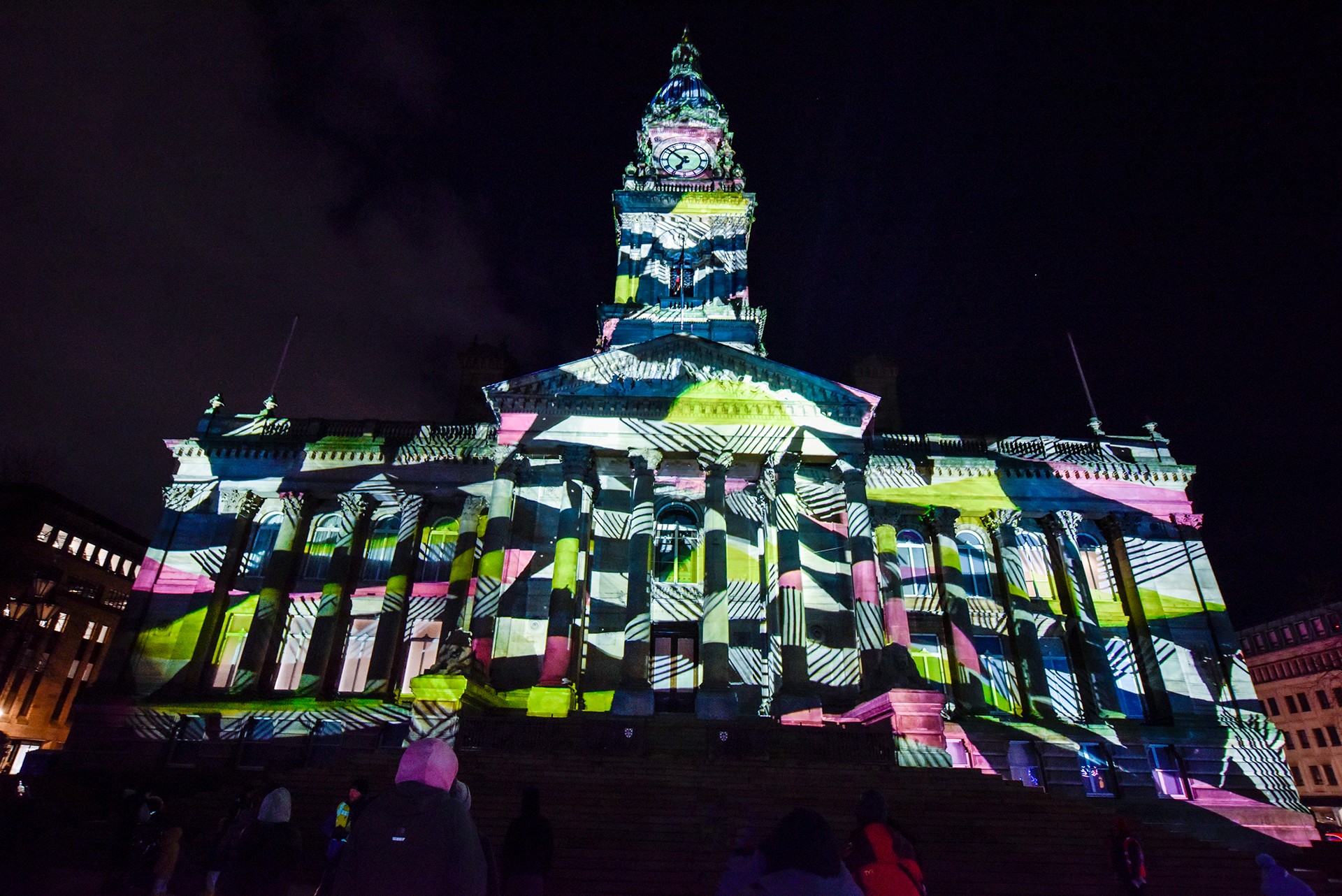In 2024 Bolton was awarded the accolade of Greater Manchester Town of Culture and across those 12 months they hosted an extensive programme of cultural events and activities. As a culmination to this exciting year of events, Bolton Town Council in collaboration with creative producers, Things That Go On Things, hosted a festival of light art, Put Big Light On. As a centerpiece to this 4 day event, NOVAK was commissioned to create a projection artwork across Bolton’s neoclassical Town Hall. This piece was to explore and celebrate Bolton’s origins, it’s history and the contemporary landscape of this great town. Critical to the artistic response of this brief was the means of how we could realise our vision across this highly detailed building and fully exploit all of the amazing architectural features of Bolton Town Hall as a complete canvas. Expert technical design would prove to be an essential component to achieving our ambitious vision